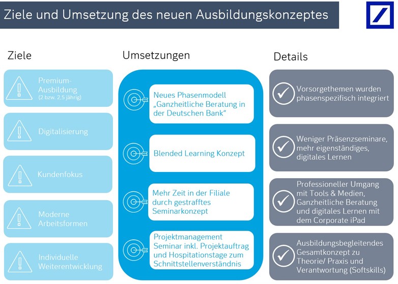 Wenn du beim größten deutschen bankunternehmen deutschlands eine ausbildung machen willst, dann solltest du dir folgende informationen sehr gründlich durchlesen. Die duale ausbildung dauert drei jahre und kann bei guten leistungen auf zwei jahre verkürzt werden. Dabei steht immer die beratungstätigkeit im mittelpunkt. Hier erfahren sie details, von der bewerbung als bankazubi dann ist das berufsbild bankkauffrau/bankkaufmann vielleicht genau das richtige für dich. Innerbetriebliche ausbildung ein zusätzliches bindeglied zwischen theoretischer und praktischer ausbildung ist die innerbetriebliche ausbildung, bestehend aus bankinternem unterricht, seminaren beim genossenschaftlichen bildungszentrum.